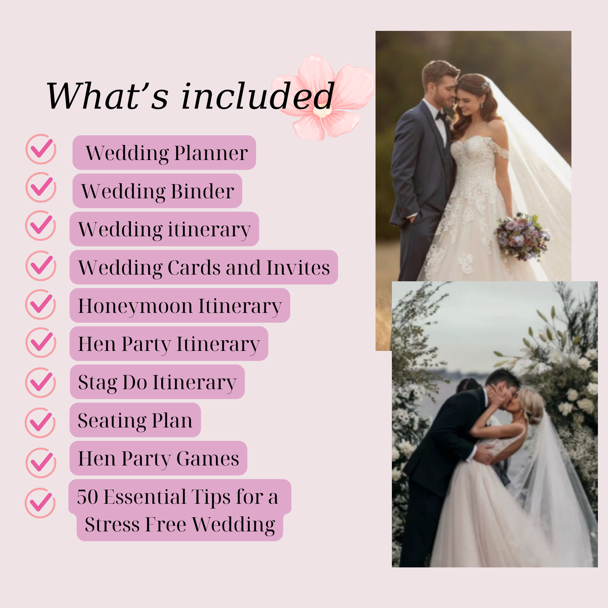 This bundle removes the stress from wedding planning, giving you everything you need in one place to make sure your big day is as magical as you imagined.