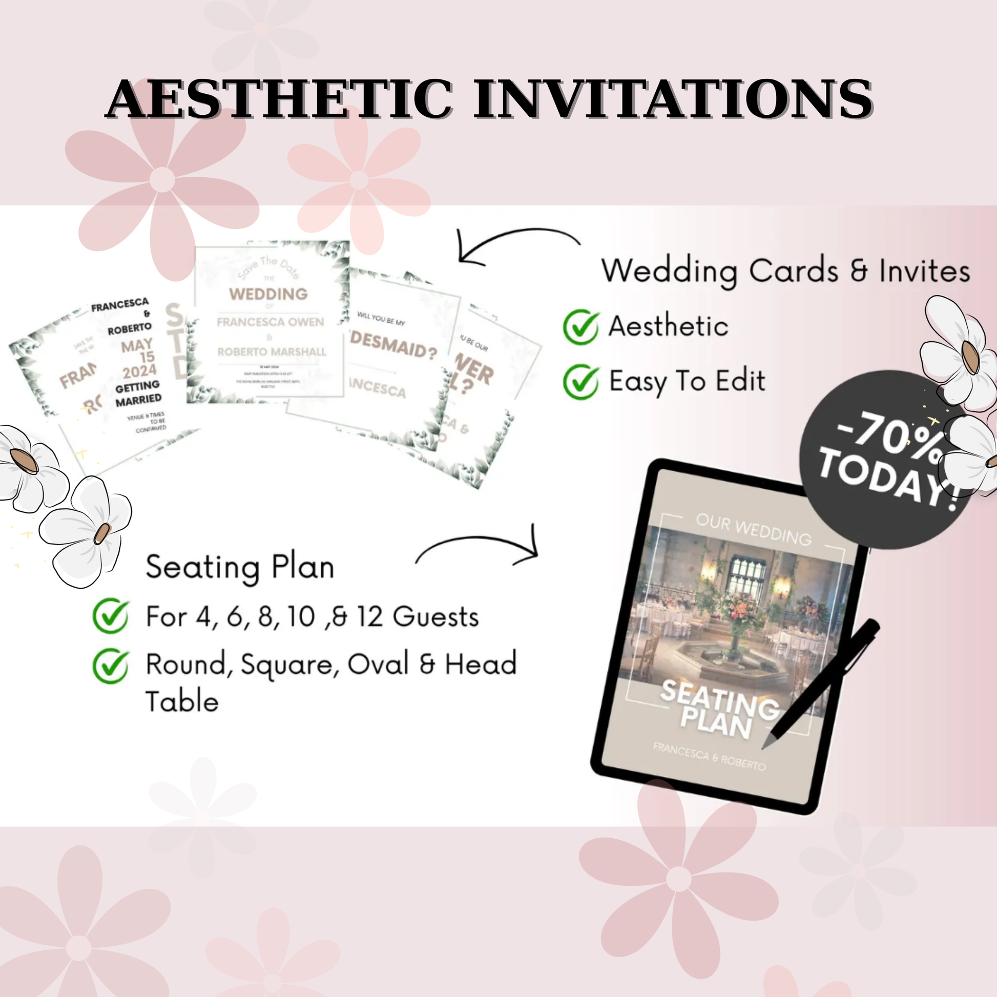 Imagine having every detail perfectly organised—from invitations to seating plans, itineraries, and even hen party games—so you can enjoy the best day of your life without worrying about forgetting anything.